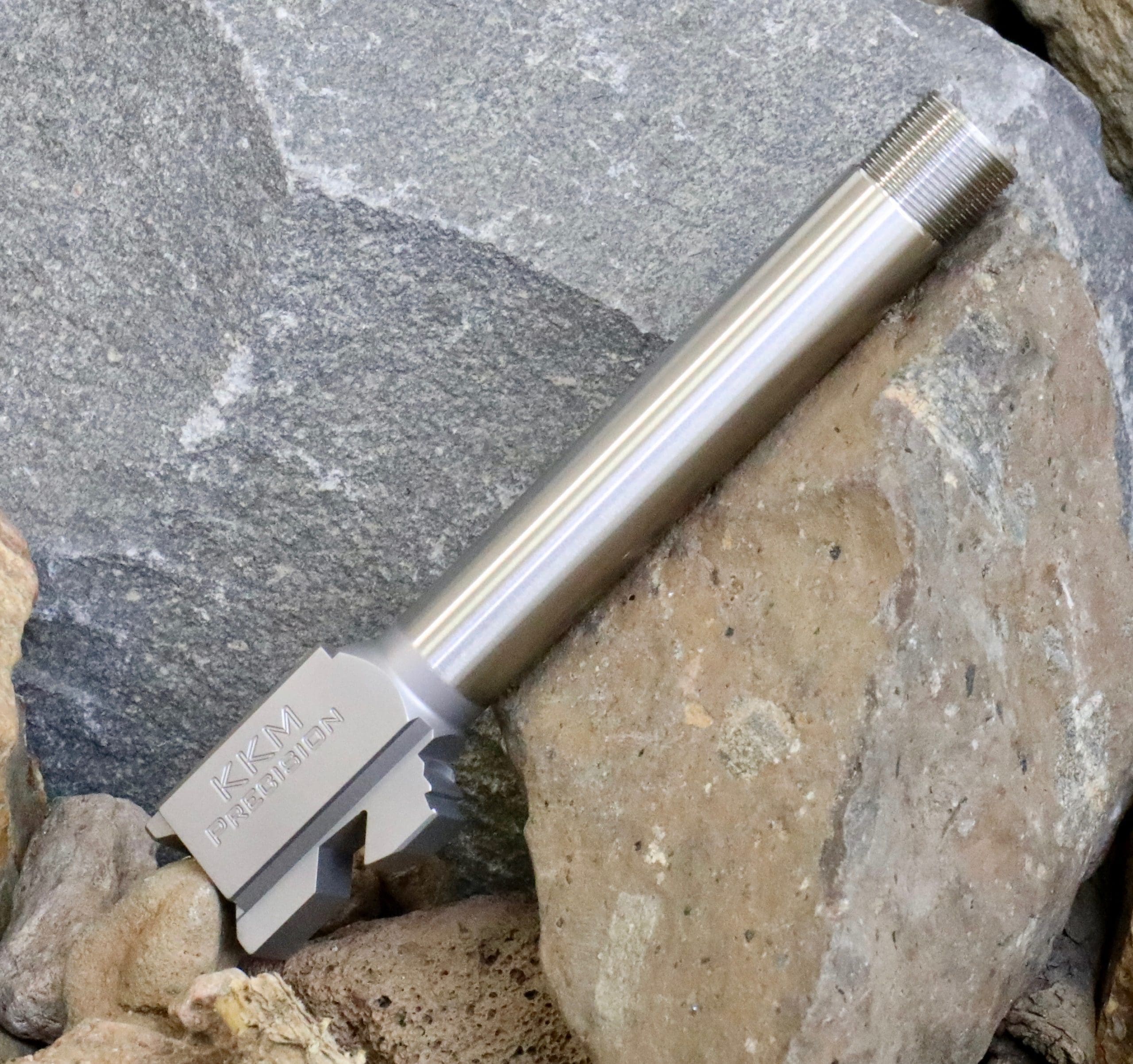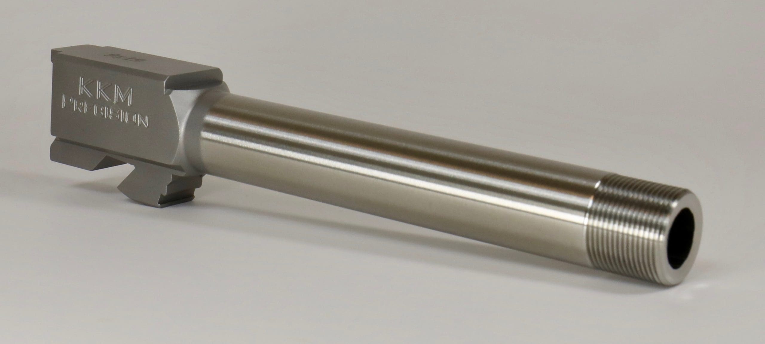 All KKM barrels are made using certified 416R gun-barrel quality stainless steel bar stock. Our barrels are then heat treated and vacuum tempered to 42 RC. All of our barrels are CNC machined to obtain superior dimensional tolerances over stock. Our advanced proprietary button rifling process allows KKM barrels to offer greater accuracy over stock barrels. Our Glock barrels come with fully supported SAAMI spec match chambers for shooting factory or reloaded ammunition as well as lead or jacketed bullets. Unless noted all barrels are drop-in fit.
