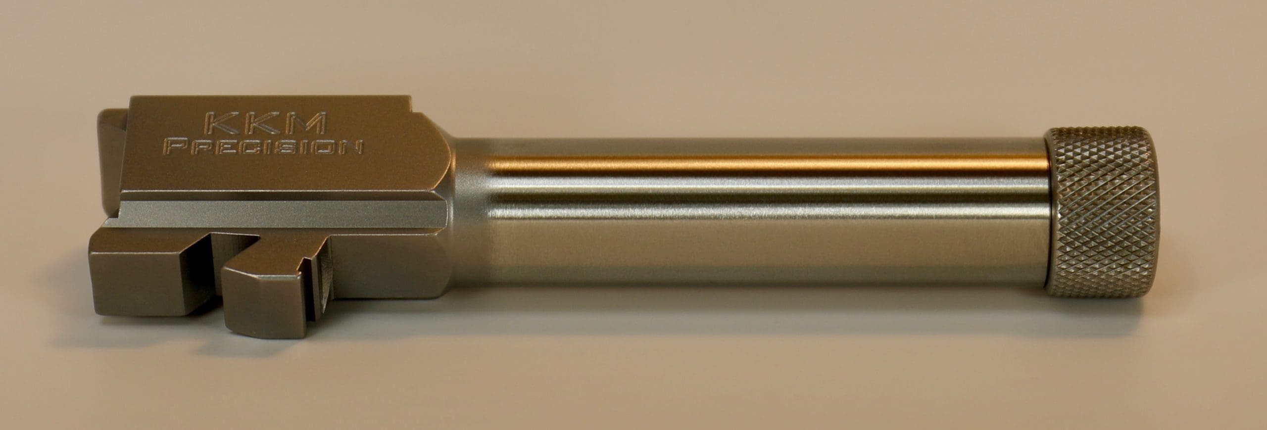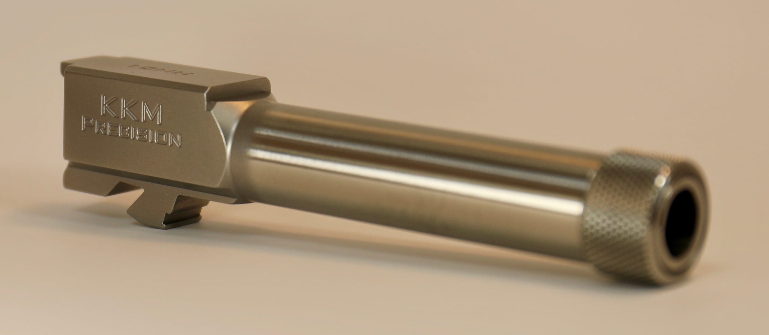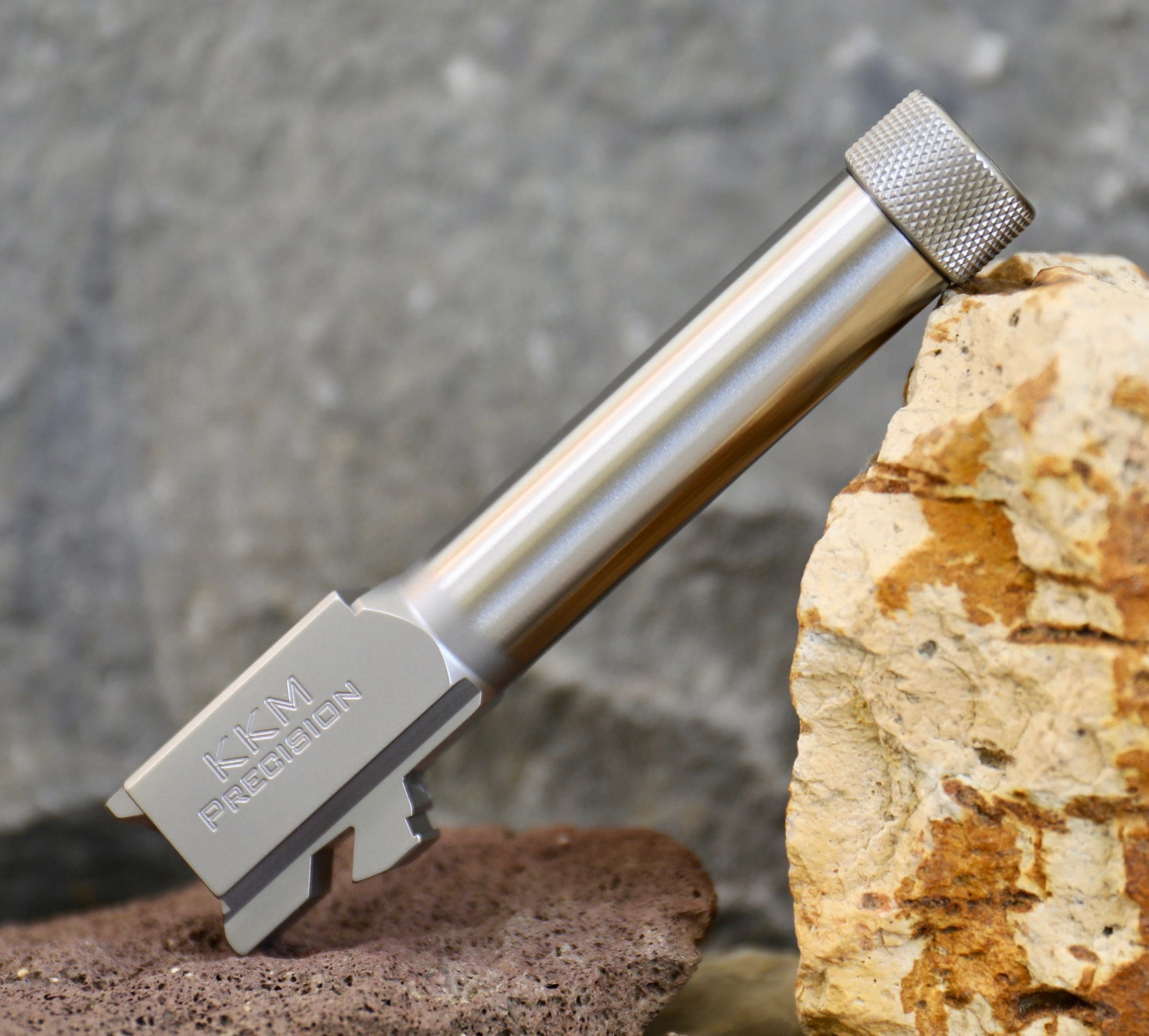 All KKM barrels are made using certified 416R gun-barrel quality stainless steel bar stock. Our barrels are then heat treated and vacuum tempered to 42 RC. All of our barrels are CNC machined to obtain superior dimensional tolerances over stock. Our advanced proprietary button rifling process allows KKM barrels to offer greater accuracy over stock barrels. Our Glock barrels come with fully supported SAAMI spec match chambers for shooting factory or reloaded ammunition as well as lead or jacketed bullets. *Unless noted all barrels are drop-in fit.