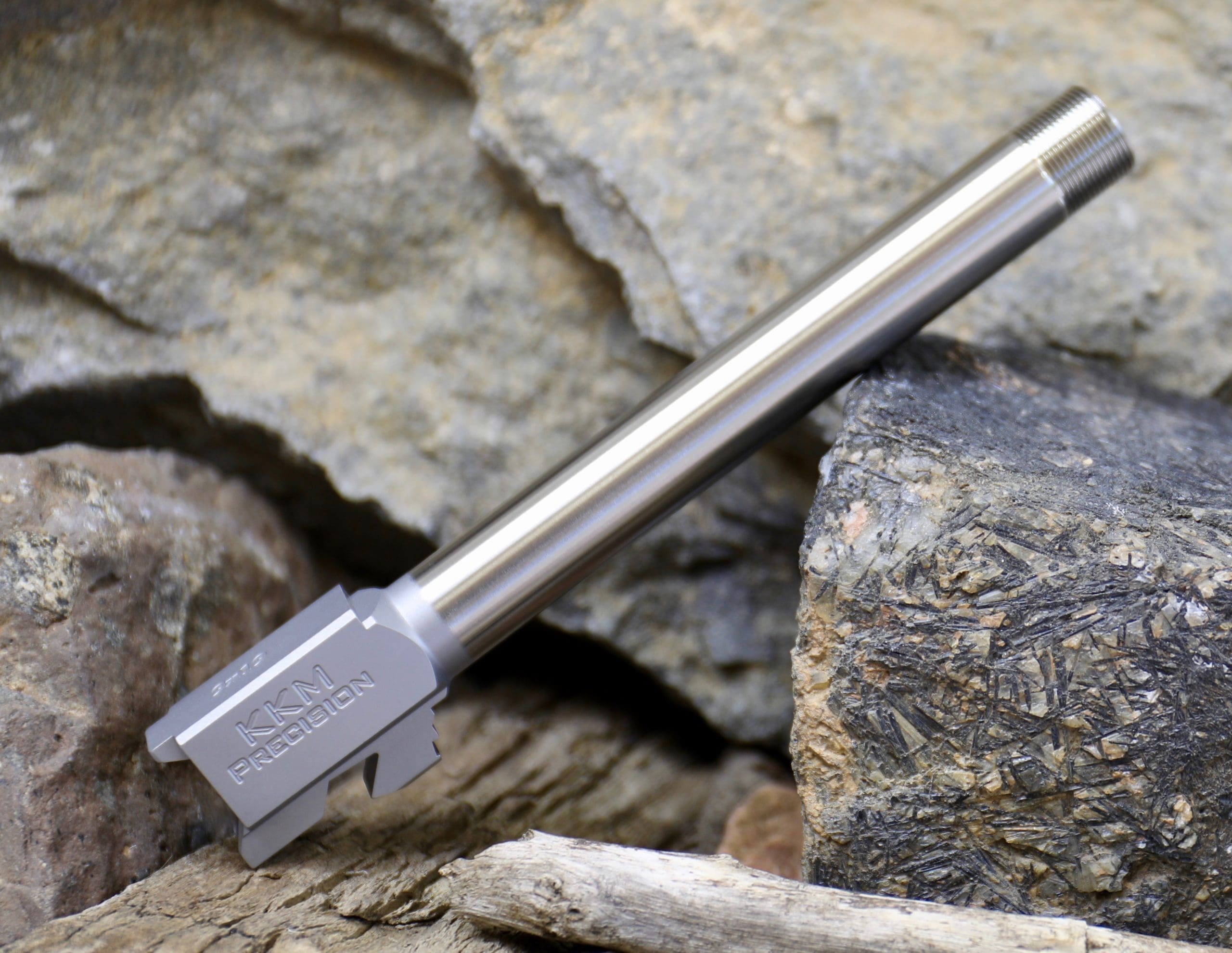 All KKM barrels are made using certified 416R gun-barrel quality stainless steel bar stock. Our barrels are then heat treated and vacuum tempered to 42 RC. All of our barrels are CNC machined to obtain superior dimensional tolerances over stock. Our advanced proprietary button rifling process allows KKM barrels to offer greater accuracy over stock barrels. Our Glock barrels come with fully supported SAAMI spec match chambers for shooting factory or reloaded ammunition as well as lead or jacketed bullets. *Unless noted all barrels are drop-in fit to factory slides and frames.