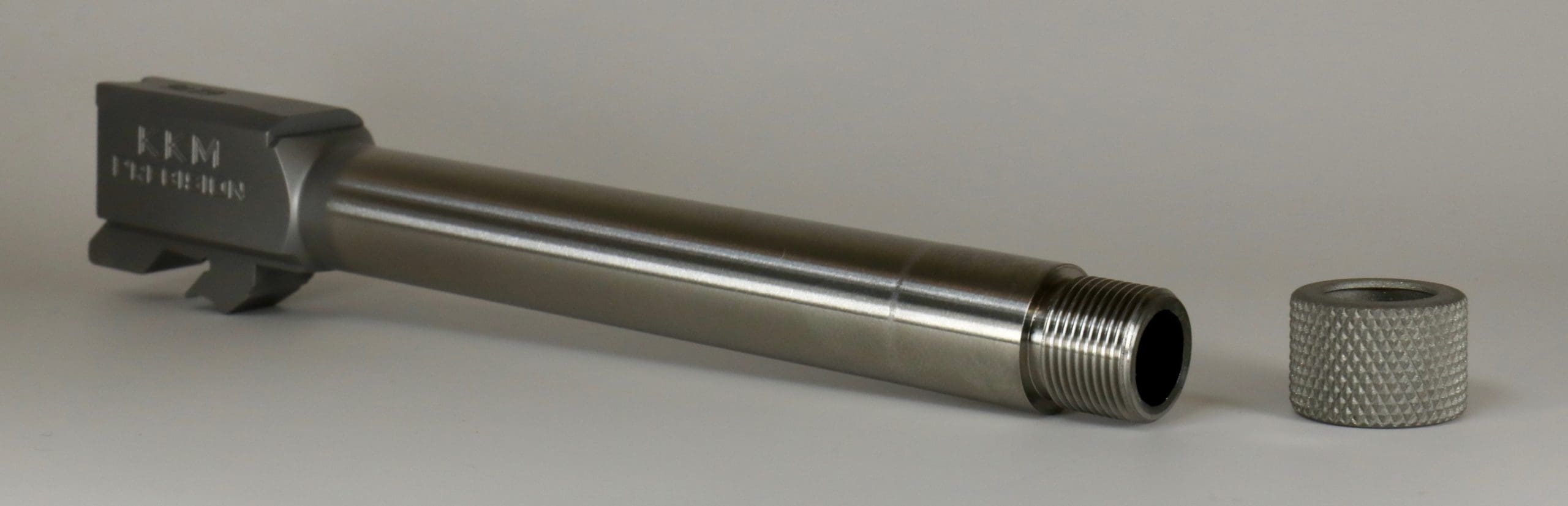 All KKM barrels are made using certified 416R gun-barrel quality stainless steel bar stock. Our barrels are then heat treated and vacuum tempered to 42 RC. All of our barrels are CNC machined to obtain superior dimensional tolerances over stock. Our advanced proprietary button rifling process allows KKM barrels to offer greater accuracy over stock barrels. Our M&P barrels come with fully supported SAAMI spec match chambers for shooting factory or reloaded ammunition as well as lead or jacketed bullets.